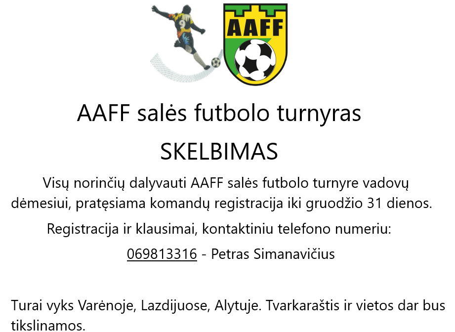 AAFF MAŽOJO FUTBOLO NUOSTATAI. AAFF mazojo futbolo nuostataiDownload Categories: Uncategorized 0 Comments Leave a Reply Cancel replyYour email address will not be published. Required fields are marked * Name * Email * Website What's on your mind? Save my name, email, and website in this browser for the next time I comment.