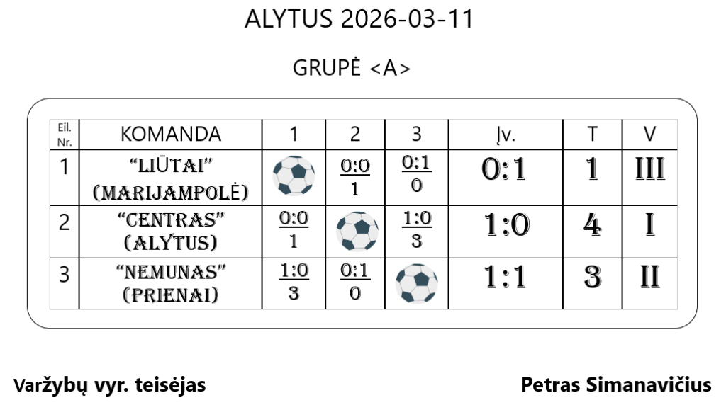 • ALYTAUS APSKRITIES SALĖS FUTBOLO TURNYRO 2026 GALUTINIAI REZULTATAI
